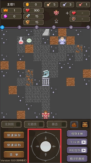 操控角色在地图里移动,收集金钥匙、银钥匙、铜钥匙、药水、宝石这类道具;碰到敌人就主动发起攻击,把它们消灭掉。