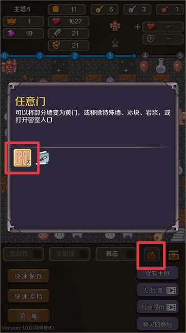 像任意门这类道具,玩家获取后,能够把部分墙体转化为黄门,也可以清除特殊墙、冰块、岩浆,还能开启密室的入口。