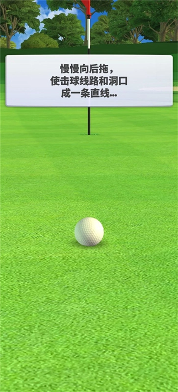 打开游戏,将球慢慢向后拖,然后按住来施加力道。