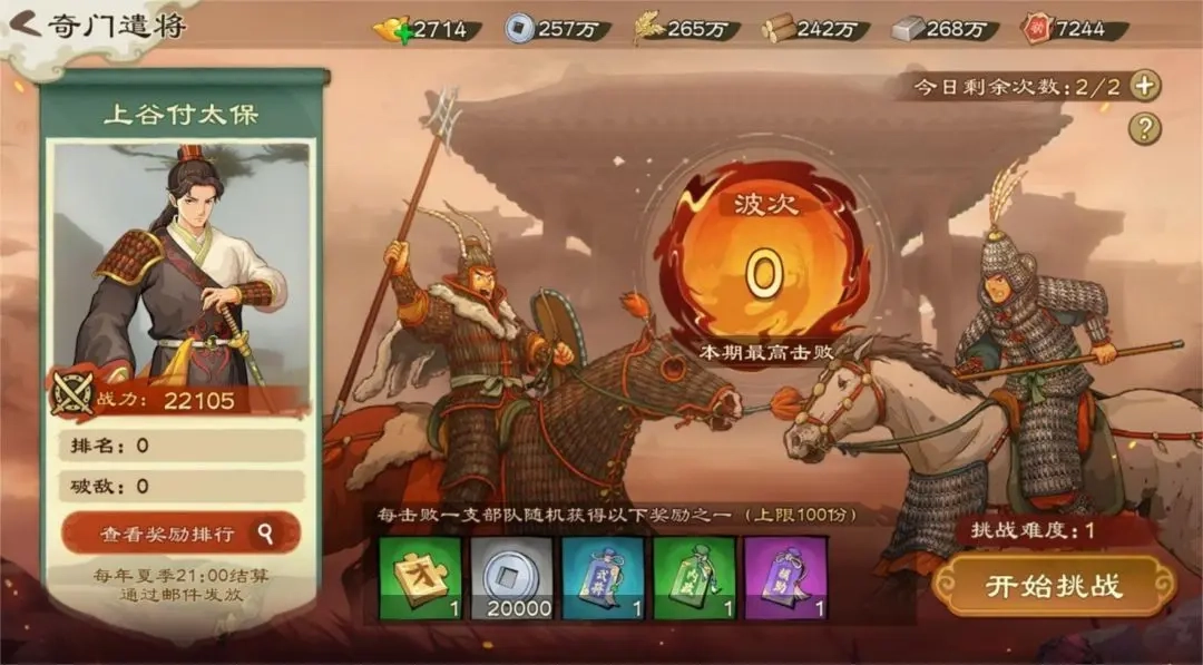 第一天建议各位主公先把战力拉满再去挑战,这样能扛住更多波敌人。每年夏季的21:00会结算排行榜,对应的奖励会以邮件形式发送给大家。