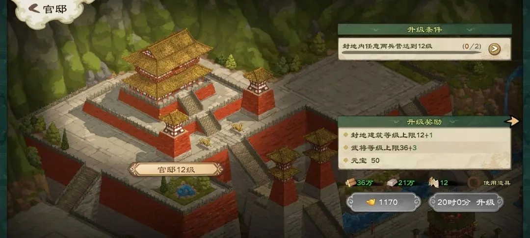 官邸等级提升至9级后,后续每次升级都能获得丰厚的升级奖励。当累计完成10次政务后(升级到11级需要累计完成13次政务),官邸等级基本可以提升到12级。此时武将的等级上限将开放至39级,并且可以额外增加一位武将参与出征;沙盘演武也能挑战到第12章,这一天的战力提升速度会非常快。