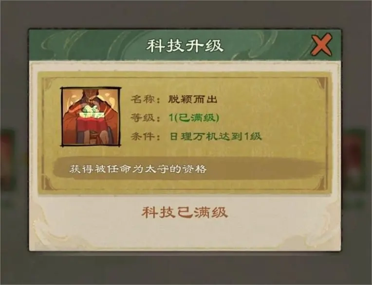 当官邸等级提升到11级时,太学院便会解锁。在太学院中,激活核心科技需要消耗大量功勋,因此需要设法获取更多功勋。这里重点介绍【脱颖而出】这项科技——若想在国家中有所成就,首先得争取成为太守,而激活【脱颖而出】后,就能获得被任命为太守的资格。