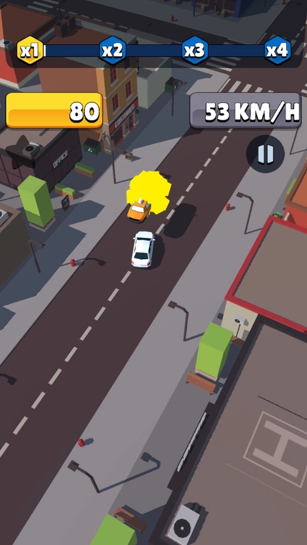 3、碰撞时尽情让这座城市变得更混乱吧,城市混乱级别越高,你能获得的分数就越多。