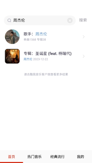 比如,你可以搜索“周杰伦”,接着点击搜索结果进入对应的页面。