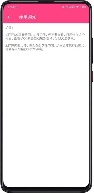 1、在QQ里点开闪照,但不要长按查看。