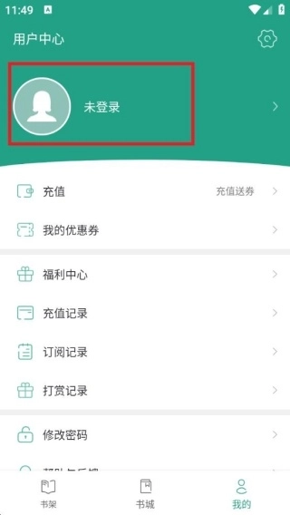 2、在个人界面找到“未登录”选项,点击该选项即可进入登录界面。