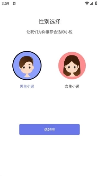 2、进入性别选择界面后,系统会依据你的喜好为你推荐小说。