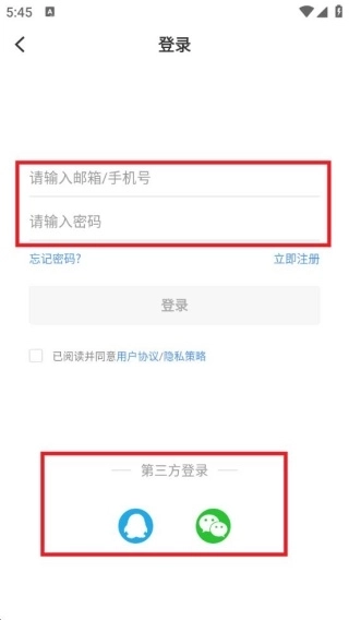 3、登录时可输入邮箱或手机号,并填写密码,此外也能选择第三方登录方式。