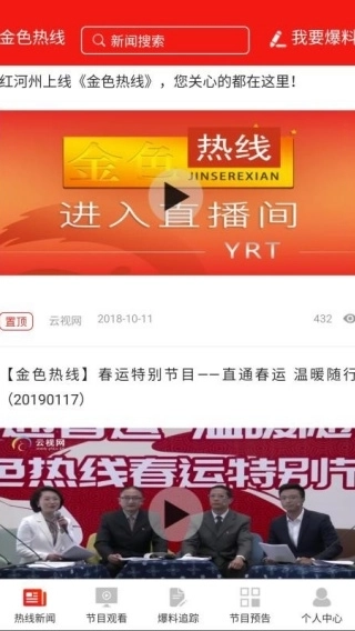 金色热线是一款专为云南用户打造的手机应用平台。它会为用户推送大量热门新闻,让大家能轻松阅读新闻,享受便捷的新闻阅读体验,快速获取本地新闻资讯。平台上还有精彩的电视节目可供线上观看,用户可以通过节目直观了解本地热门新闻及事件的最新动态。在这里,每位用户都能成为新闻传播者,遇到新鲜事时可以进行爆料和分享,快来体验吧。