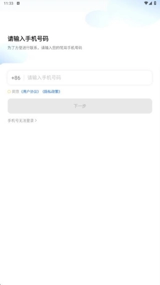 2、进入登录页面,输入常用手机号码并勾选相关协议,随后点击页面底部灰色的“下一步”按钮,完成登录操作的下一步骤。