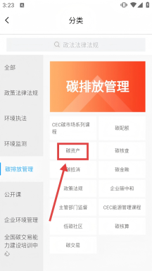 2、进入课程分类页面后,点击【碳排放管理】类别下的【碳资产】选项,即可跳转至碳资产课程列表页面。