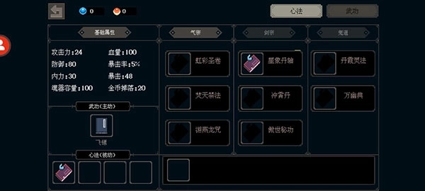 13、【天赋的升级】每次打通关和打开游戏的地方,左手位置应该是升级武功的,右手是升级天赋(需要点击对话)。