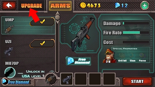 1、进入游戏并来到关卡准备界面后,点击上方的“Upgrade”界面