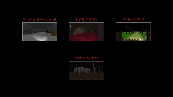2、游戏地图模式依次为仓库、宾馆、院子和沼泽。