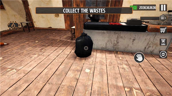 进入小屋后,点击收集四处散落的垃圾,维持环境的整洁干净是吸引顾客的首要步骤。