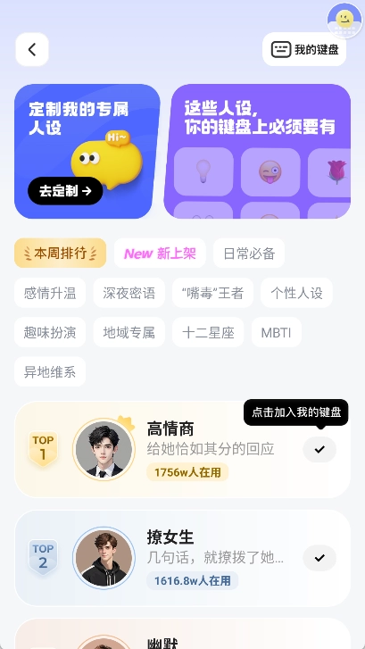 【lovekey键盘】复制对话内容后点击键盘,还能挑选人设来辅助回复。