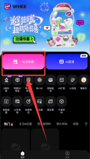 选择红色框框中的一句话修图按钮菜单进入。