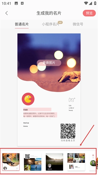 2、在“生成我的名片”页面,选择目标名片模板。