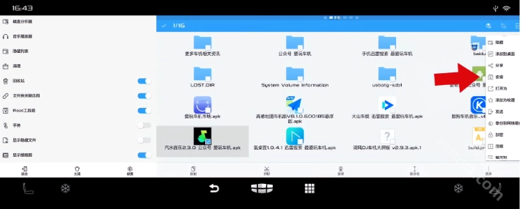 答:把U盘插到车机上,打开相关软件找到U盘所在的路径,接着长按安装包,选择安装选项就能完成操作了。