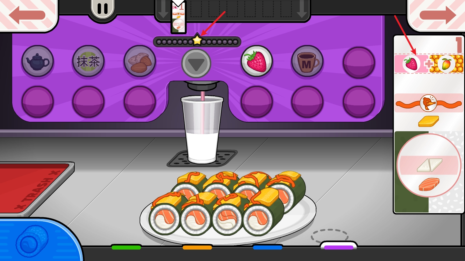 最后就是饮料部分啦,选好合适的材料后,在中间的星星位置停下就可以了。