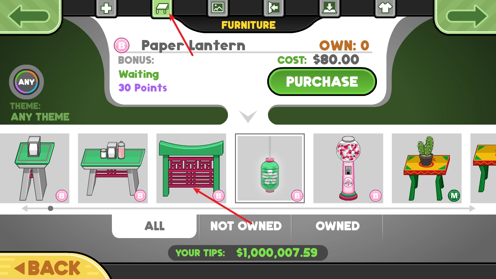 之后我们回到界面里,点击上方的第二个选项,点击该选项就能放置已购买的装饰品。