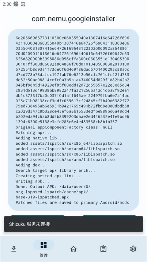 此时Shizuku服务显示未连接,这种情况下需卸载本地安装的应用。