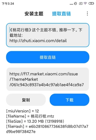 4、提取主题包的直链地址,点击链接进行。