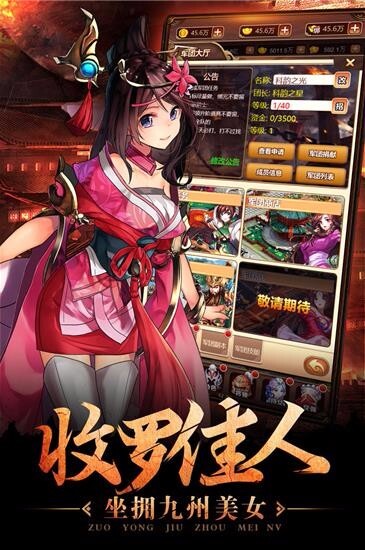 在这款游戏里,玩家不仅要打败各方割据势力,还要成就天下大同的丰功伟业。游戏中角色造型卖萌搞笑,界面设计精致细腻,同时还有大量经典的卡牌养成体系。