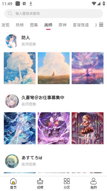 4、“分区”页面,通过更细致的分类为用户呈现壁纸内容。
