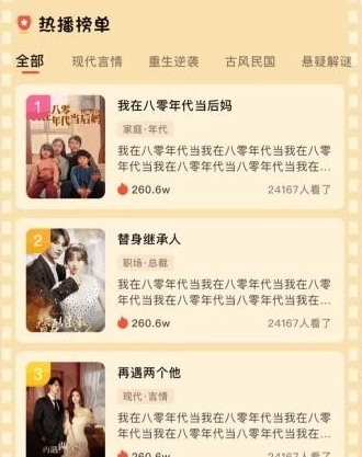 提供了不同类型的短剧榜单,能够让用户获取不同类型的短剧资源