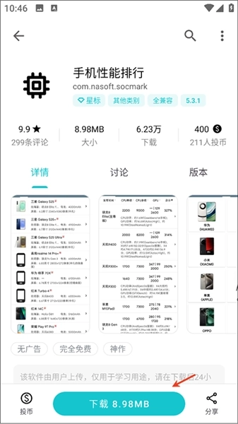 2、在应用详情页点击对应按钮,支持断点续传功能;下载完成后会自动提示进行安装。