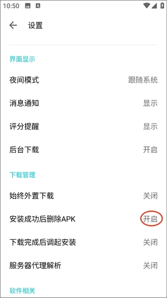 5、最后别忘了在软件里设置偏好,进入设置开启“安装后删除APK”功能,这样就能自动清理安装包,帮你节省存储空间。
