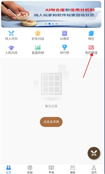 1、打开王者象棋,登入后点击我的棋谱。