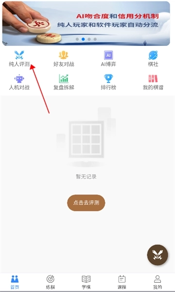 1、首页点击纯人评测。