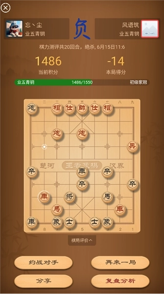 4、棋力测试完成后,系统会依据玩家的棋艺水平给出相应分数。通过棋力测试,玩家能够清晰了解自身的棋艺水准,进而更有针对性地提升棋艺。