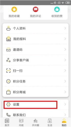 2、在【我的】页面中,选择【设置】栏目