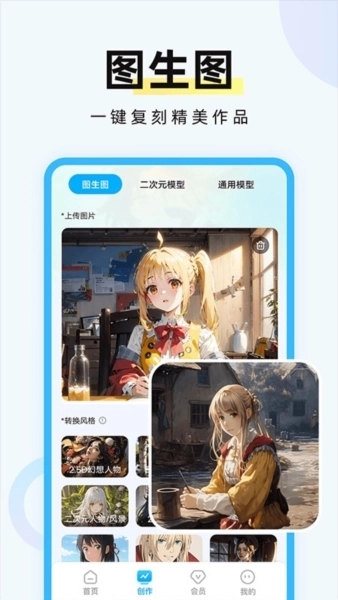 你可以把图片上传到软件里,软件会智能识别图片内容,进而对图片风格进行调整和创作。