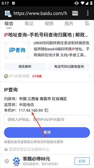 然后打开需要抓包的应用或网页,比如想抓取显示自己IP地址的那条数据,可以在点击【查询】按钮前,先开启Reqable的抓包功能,再点击网页上的查询按钮,之后关闭抓包即可;过程中会有缩略图方便大家实时查看数据情况。