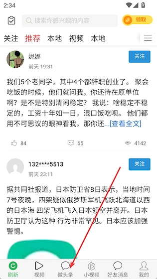 打开,点击下方微头条