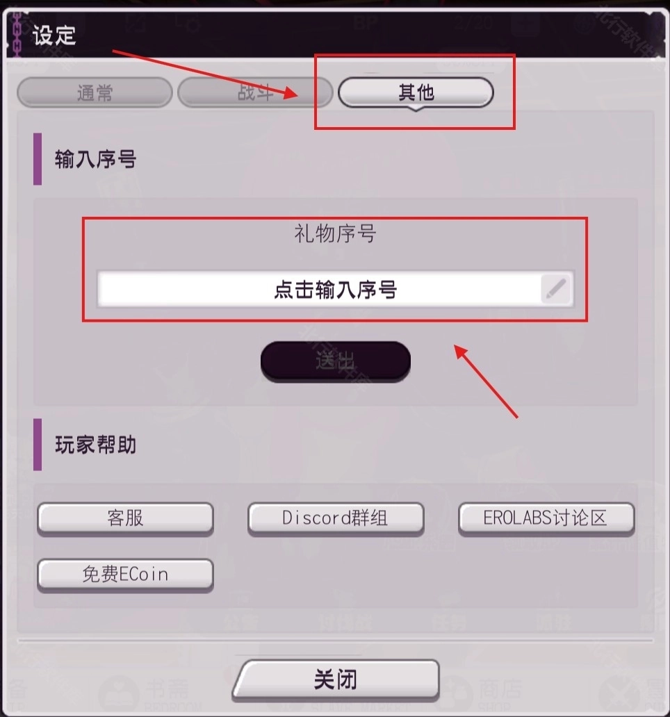 2、进入设定界面后,先点击其他选项,接着点击输入序号就能完成兑换操作。