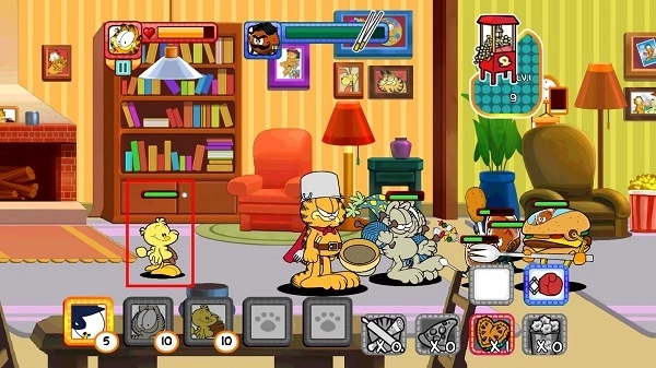 用饼干给你的加菲猫提升等级,技能、队友、家具这类想升级的东西都能用它搞定。把自己武装起来,让战斗力翻好几倍,最后把家改造成超级食物战场——外星人完全是小意思,就连咱们要守护的冰箱都能升级。外星人尽管来,打不过我,你也别想抢走我的冰箱。