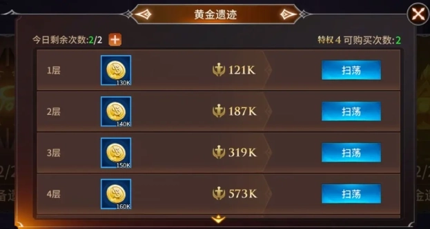 随着契约者们踏上拯救大陆的征程,当他们成功通关120关后,遗迹副本便会解锁。每日通关黄金遗迹副本能够获取丰厚的金币奖励,而且金币副本的等级会根据契约者的战力同步提升——战力越强,副本带来的奖励就越丰厚。