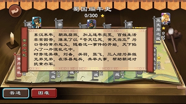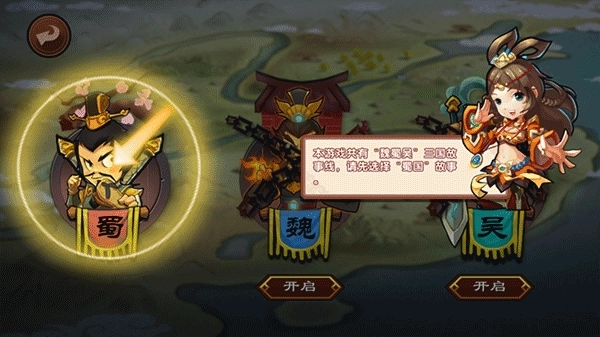 2、本游戏共有“魏蜀吴”三国故事线。请先选择“蜀国”故事,其他的后续解锁;
