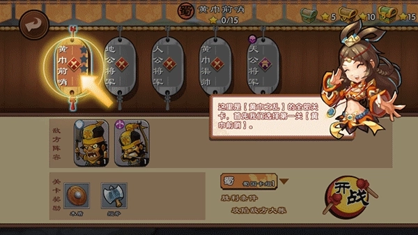 3、蜀国的故事由十四场战役构成,接下来我们就从第一场战役【黄巾之乱】开启吧。