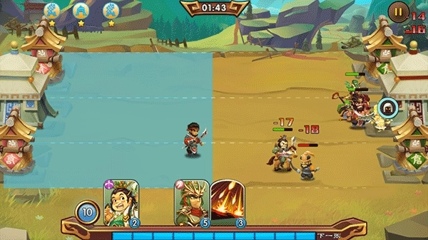 1.即时歼灭战斗模式:玩家点击武将技能球即可释放技能。技能球消灭数量越多,技能造成的伤害就越高。该战斗模式既对玩家的战略规划能力提出考验,也十分看重玩家的操作熟练度。