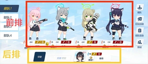 队伍的构成是:4名“突击学生”(位于前排)加上2名“支援学生”(位于后排);
