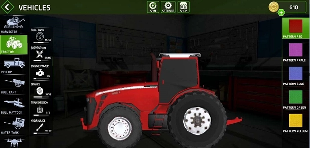 1、农业机械种类丰富且高度还原真实场景,涵盖约翰迪尔、CLAAS等400多个真实品牌的100多台机器,其操作按钮布局与内部构造细节均与现实中的对应机械完全一致。