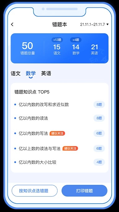 错题整理工具:练习题目可通过拍照上传核对答案,系统会自动将错题收录至错题本中,支持随时打印使用。