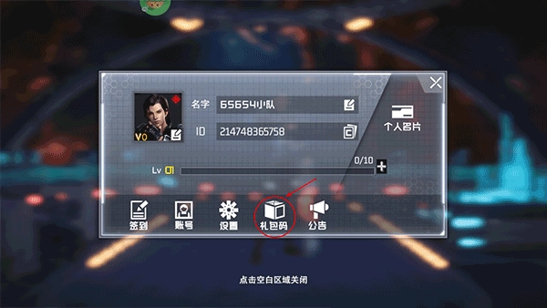 接着点击左上角的头像进入个人信息页面,找到“礼包码”这一选项。