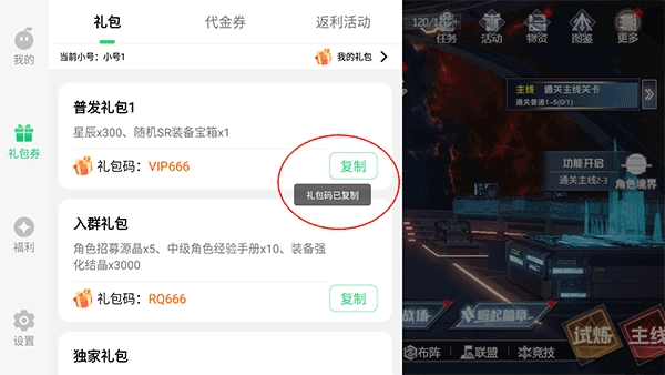 进入后,点击礼包券界面,这里面有多种福利礼包,能直接复制对应的礼包码。